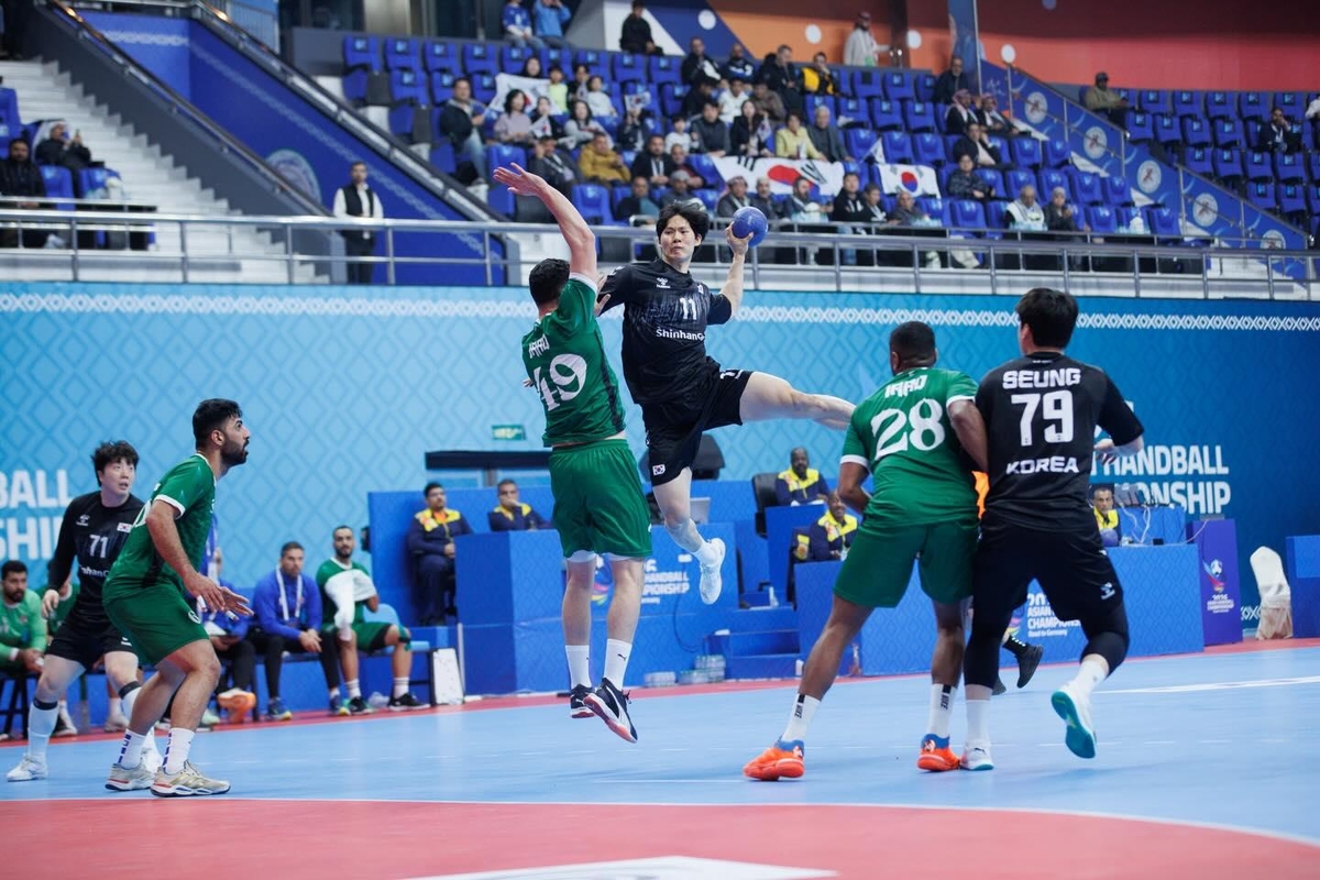韓国男子ハンドボール代表チームがアジア選手権決選リーグでイラクを制圧し、4強進出の可能性を続けた。