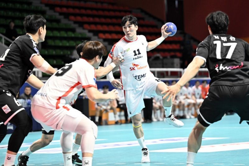 SKホークスは忠南道庁を相手に着実にリードを維持して31-26勝利を収めた。 2連勝を続けたSKホークスは9勝2敗(勝点18点)で2位を守り、先頭仁川都市公社をきちんと追撃した。