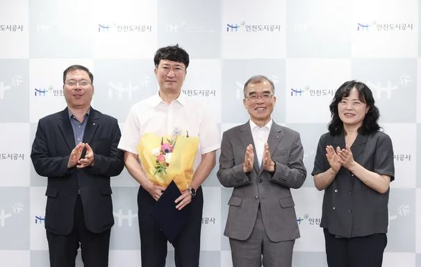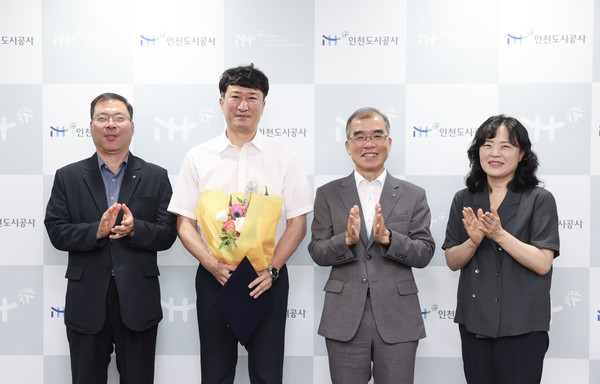仁川都市公社が職人益監督を選任し、関係者が記念撮影をしている。 <写真=iH>