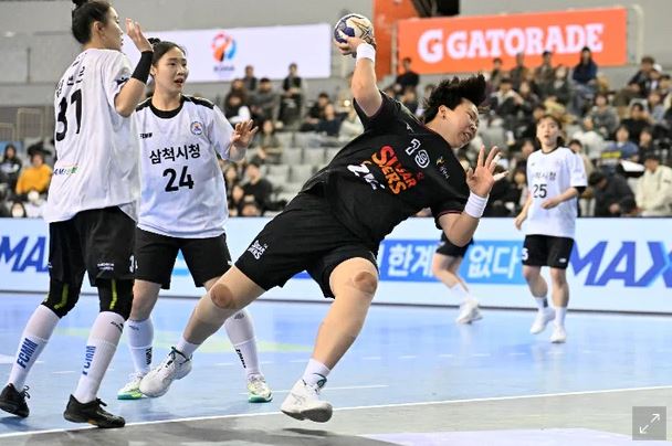Hリーグ2024-2025シーズンSKシュガーグライダーズと三尺市役所の試合の様子。韓国ハンドボール連盟提供。