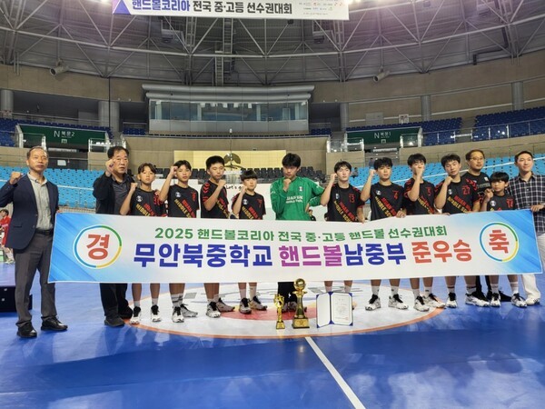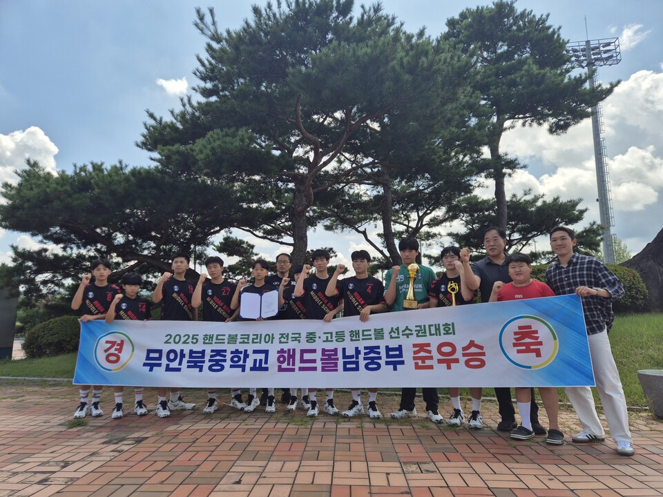 全羅南道体育会(会長ソン・ジンホ)と全南ハンドボール協会(会長キム・テソン)によると、武安北中ハンドボールチームが去る5日、慶北キムチョンで閉幕された「2025ハンドボールコリア全国中・高等選手権大会」男子中等部で準優勝を占める快挙