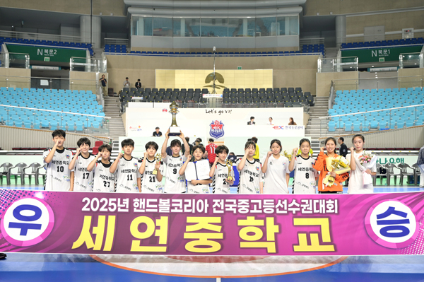 セヨンジュンは去る5日、慶尚北道金川室内体育館で開かれた2025ハンドボールコリア全国中高等選手権大会女子中等部決勝で忠北増平女中を20代18に引き上げて優勝カップを持ち上げた。