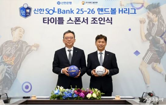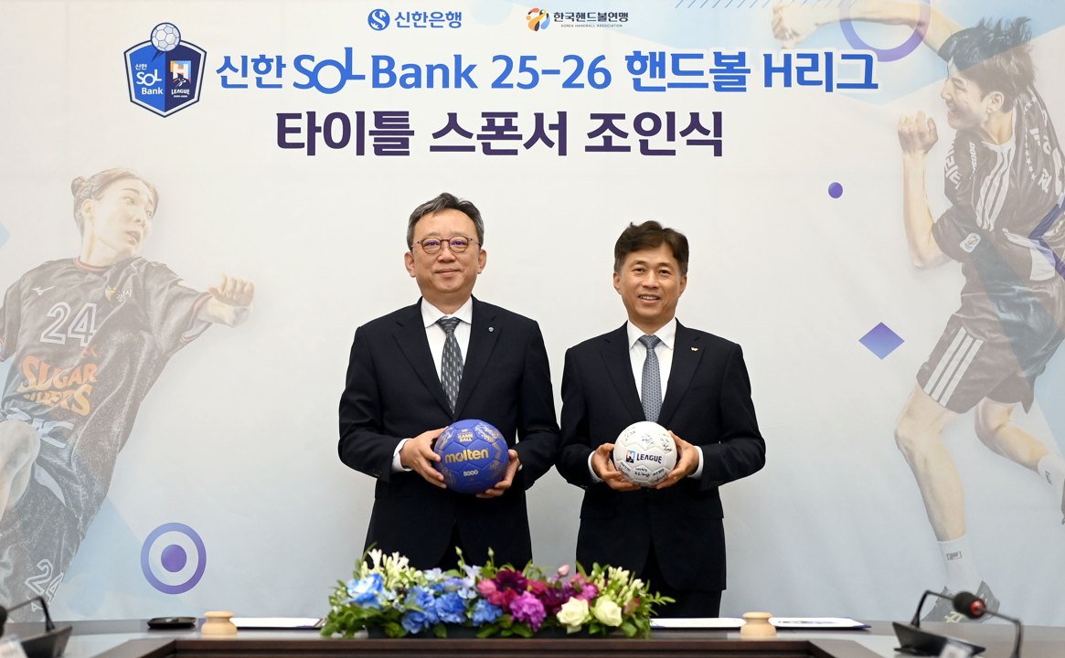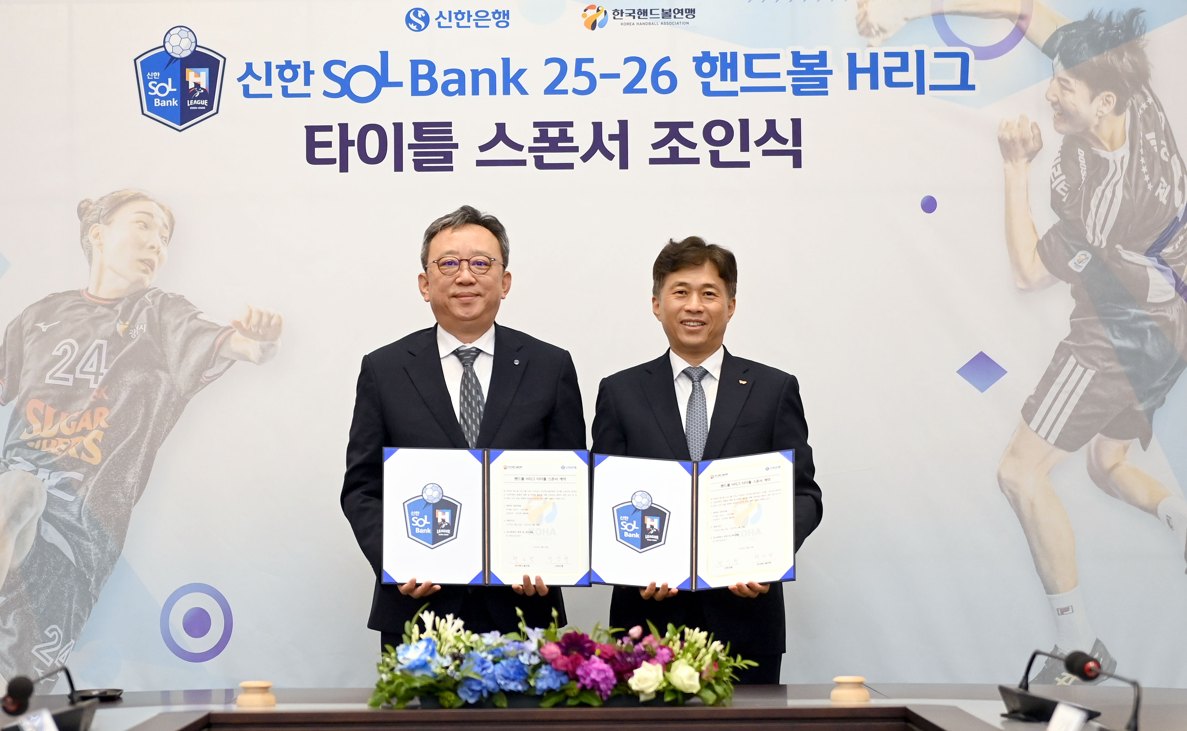 スポンサーシップ契約によりリーグ名称は「新韓SOL Bank 2025-2026ハンドボールHリーグ」と決定された。 これに先立ち2024-2025シーズンまでのHリーグタイトルスポンサーは新韓カードで、今回新韓銀行がスポンサーになって新韓金融は4年間韓国ハンドボールの中心舞台であるHリーグと同行することになった。これと共に、新韓金融は2023年から3年間ハンドボール国家代表チーム公式スポンサーを務めている。 新韓銀行と連盟は16日、京畿道利川SKハイニックス本社でタイトルスポンサーのジョインシクを行った。この席には、首脳革新韓銀行長とクァク・ノジョン連盟総裁兼SKハイニックス代表取締役社長をはじめとする両側関係者らが参加した。 チョン銀行長は「新韓銀行は顧客と地域社会の心強いパートナーとして健康なスポーツ文化を広げていくことに努めている」とし「長い伝統を持ったハンドボールがより多くのファンの愛を受けられるように一緒にする」と明らかにした。