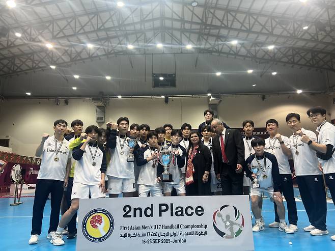 ヨルダン・アンマンで開かれた17歳以下アジア選手権大会で準優勝を占めた代表チーム。韓国ハンドボール協会