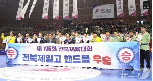 23日、全北特別自治道教育庁によると、この日、全北第一高は釜山スポウォンパーク金正室内体育館で開かれたハンドボール決勝戦で、忠北代表清州工業高等学校を32代24に制圧して金メダルを受賞した。