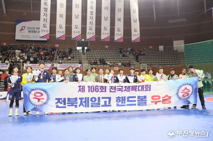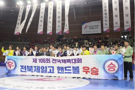 全北第一高校(校長チョ・ヒョンイク)が「第106回全国体育大会」最後の日、ハンドボール男子18歳以下の決勝戦で優勝の栄誉を抱いた。