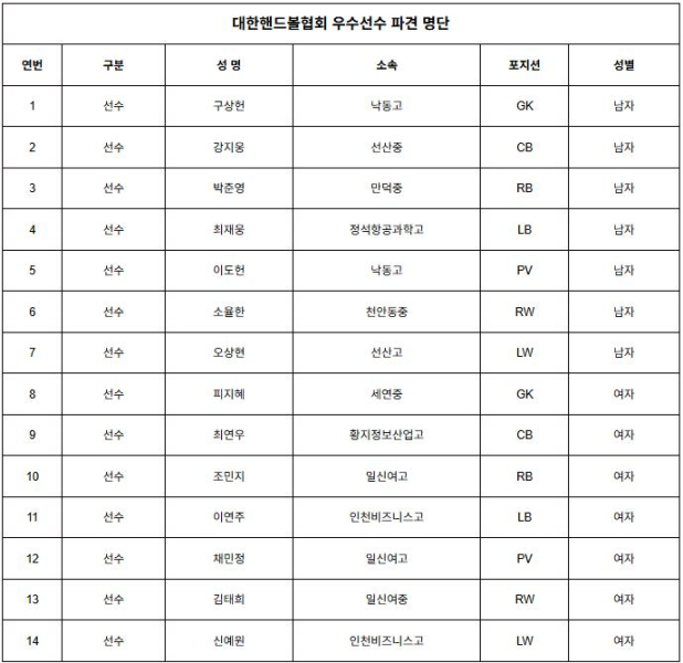 今回の新人ドラフトは、10月30日(木)ソウル江西区メイフィールドホテルで開かれた「新韓SOL Bank 2025-26 Hリーグ新人ドラフト」の行事で行われ、男子部22人、女子部25人など合計47人の選手が参加した指名チームに参加した。