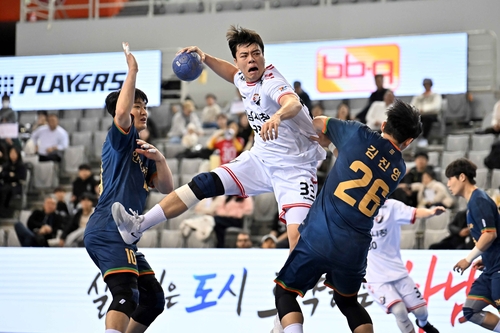 30日、仁川都市公社と競技でシュートを投げる常務イ・ヒョクギュ [韓国ハンドボール連盟提供。再販とDB禁止]