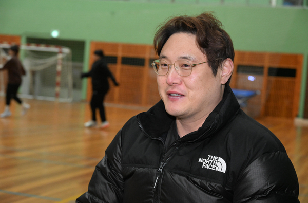 キム・ヒョンチャン慶南開発公社女子ハンドボール選手団監督が7日、昌原市馬山室内体育館でインタビューしている。 /キム・グヨン記者