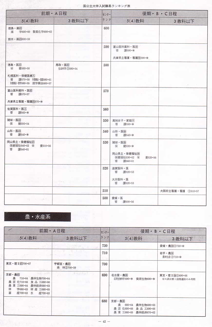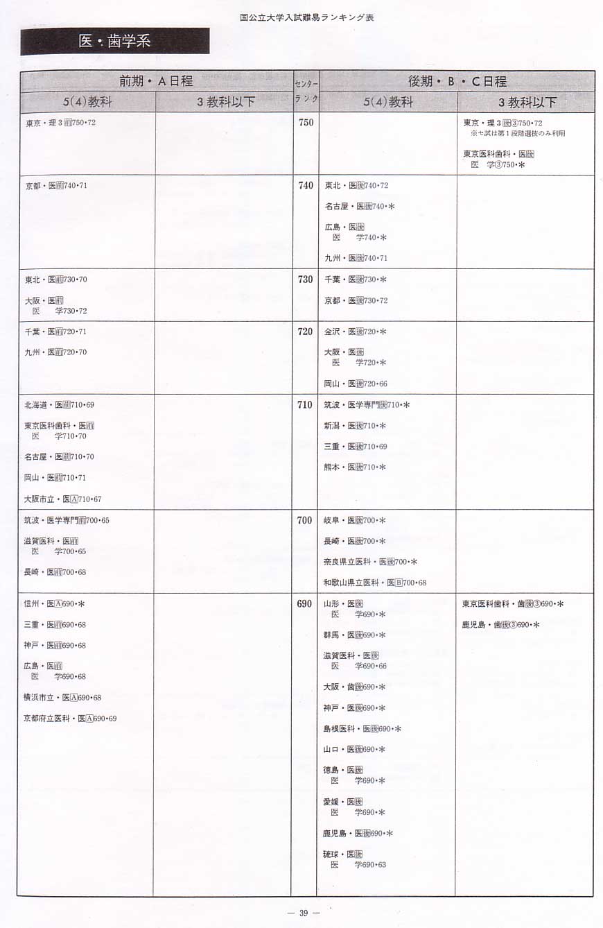 1995年度国立文系へ 1995年度国立理学系へ 1995年度国立工学系へ 1995年度私立文系へ 1995年度私立理系へ 代々木ゼミナール入試難易ランキング 1995年度 国公立 医歯薬