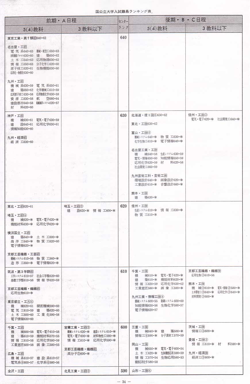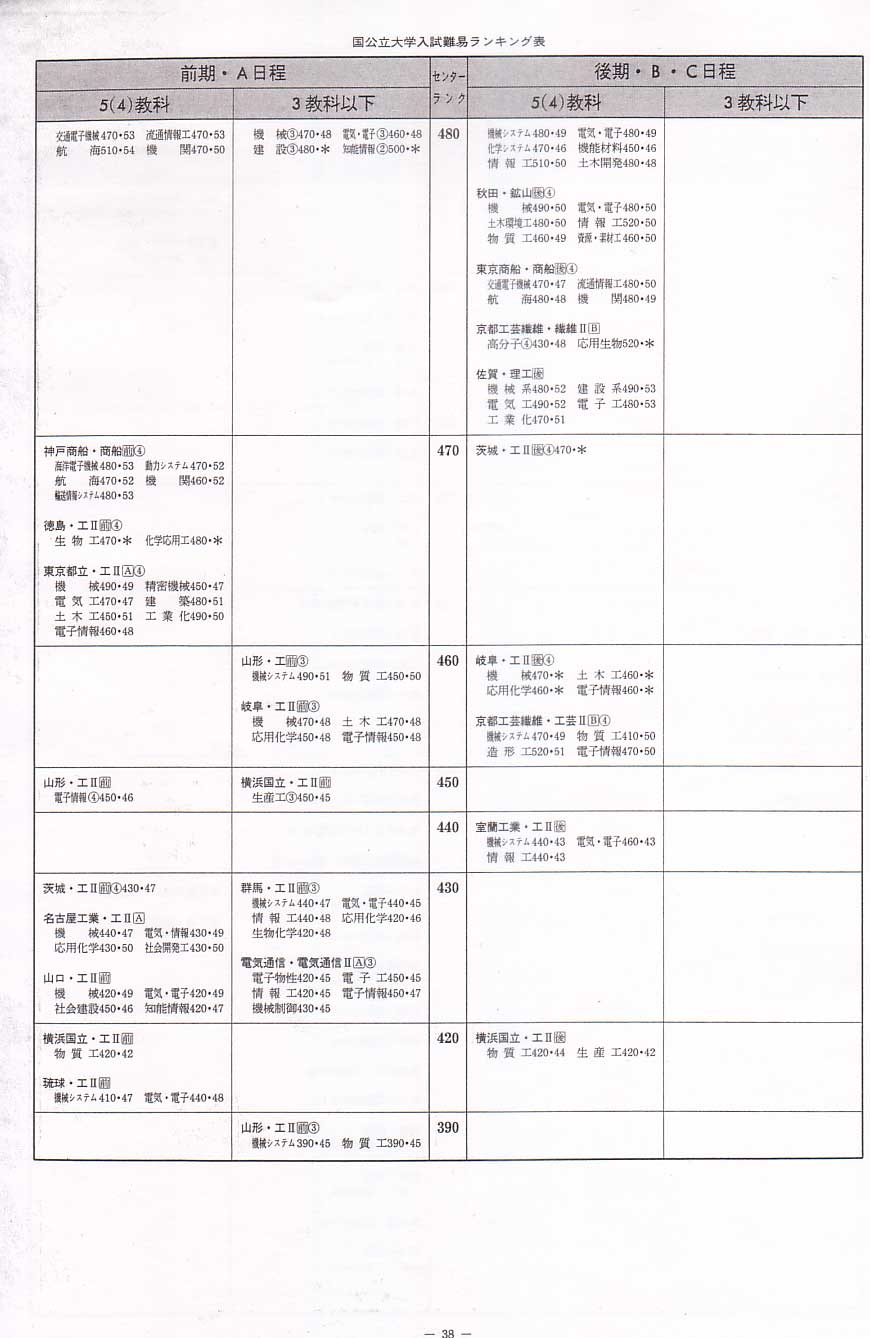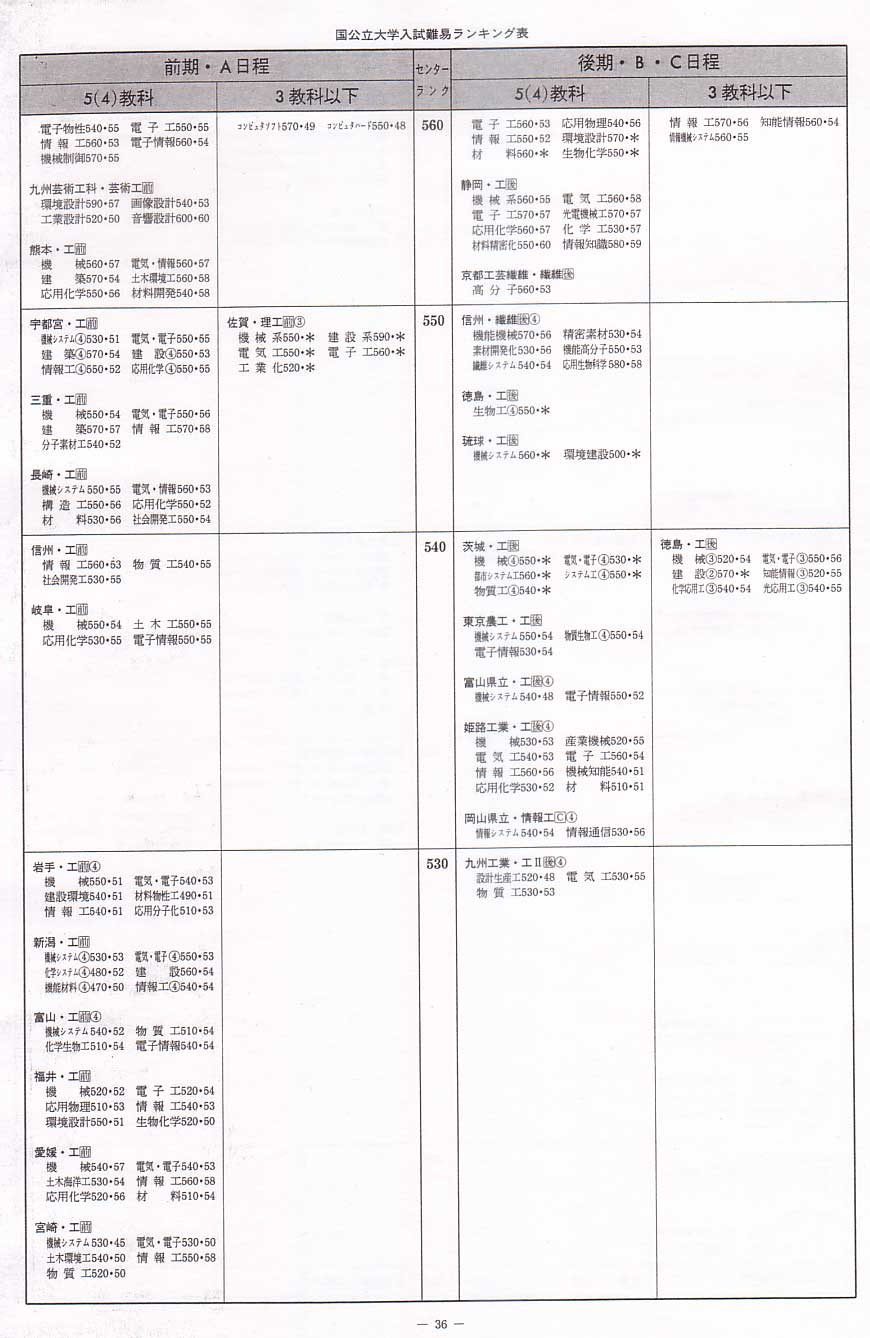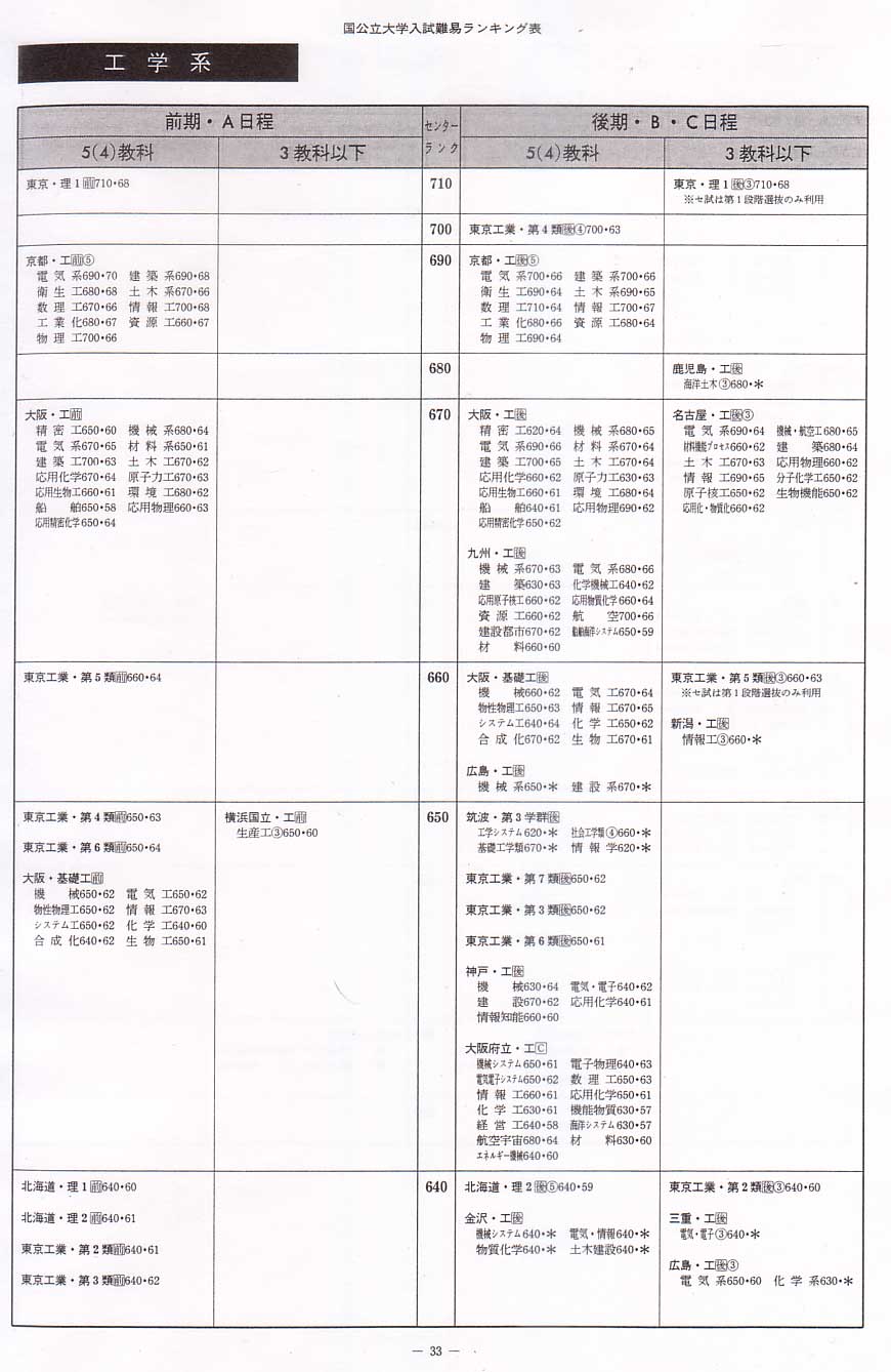 1995年度国立文系へ 1995年度国立理学系へ 1995年度国立医歯薬へ 1995年度私立文系へ 1995年度私立理系へ 代々木ゼミナール入試難易ランキング 1995年度 国公立工学系